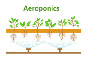 Корените увисват в затворена камера и се овлажняват периодично със спрей-фина мъгла от разтвор. Максимални нива на кислород и минимално потребление на вода.